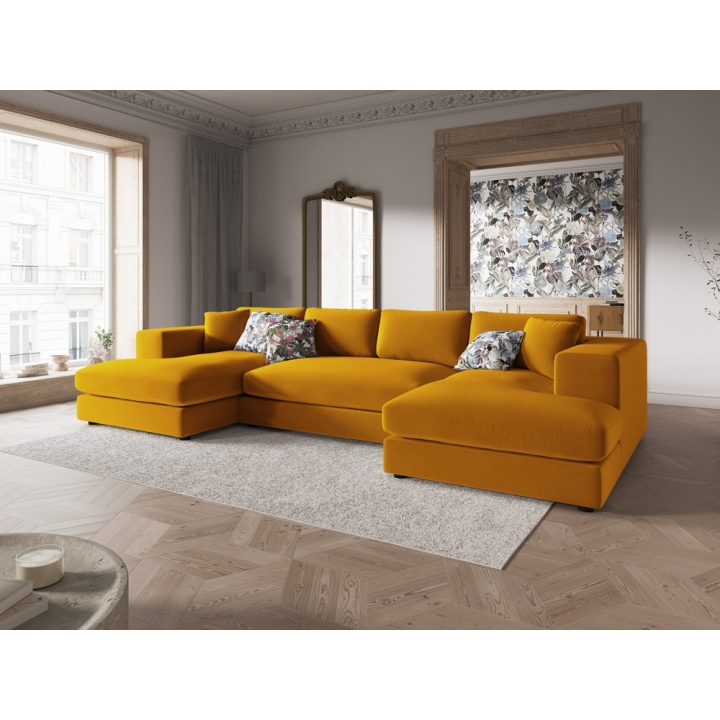 The Tendance panoramic corner sofa from Christian Lacroix is for those who value comfort and quality. Made from the exceptional Paris velvet fabric, which has a smooth, delicate surface and a slight sheen, it is the perfect choice for interiors where a cosy relaxing atmosphere is important. The fabric is characterised by its high abrasion resistance ( 100,000 cycles in the Martindale test) , and its "pet friendly" properties make it scratch resistant, making it particularly helpful for pet owners.