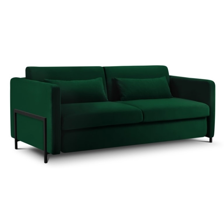 The Yanis 3 SF velour 3-seater sofa with sleeping function by Christian Lacroix combines comfort and exceptional design. The sofa offers a large sleeping surface of 205x160 cm, ideal for everyday use as well as for guests. Its construction is based on a solid frame made of pine, particleboard and plywood, ensuring durability for years to come. The seat filling is 35 kg/m³ polyurethane foam and springs, which guarantees comfort and stability, while the backrest made of 18 kg/m³ polyurethane foam provides adequate support during use. The sofa is equipped with 10 cm high black metal legs, which give it a light and modern feel.