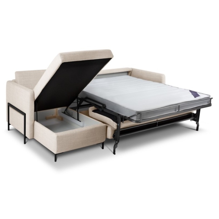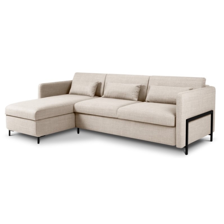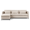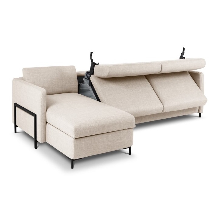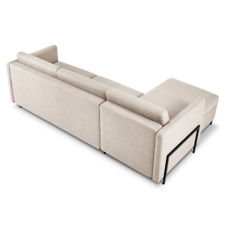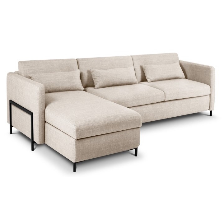 The 4-seater corner sofa with sleeping function Structural fabric Yanis Christian Lacroix is a modern corner sofa, ideal for living rooms decorated in a minimalist style. Its versatile design, available in left- or right-sided versions, and a wide choice of structural fabric colours allow you to fully adapt it to your interior. The sofa is equipped with an Italian frame with a mattress , providing a large sleeping surface measuring 205x140 cm, and a bedding container in the chaise longue.