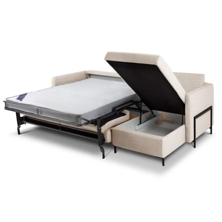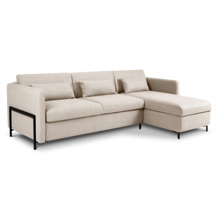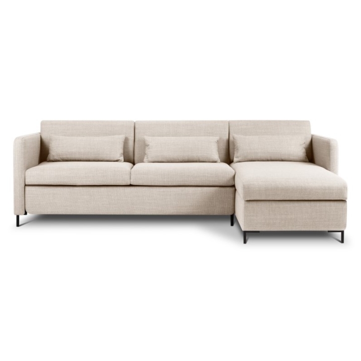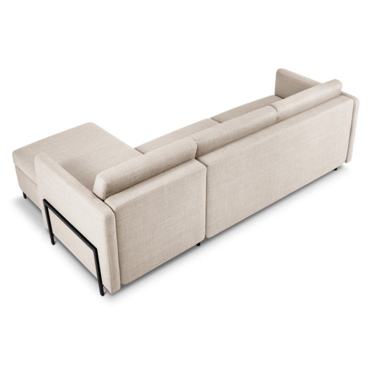 The 4-seater corner sofa with sleeping function Structural fabric Yanis Christian Lacroix is a modern corner sofa, ideal for living rooms decorated in a minimalist style. Its versatile design, available in left- or right-sided versions, and a wide choice of structural fabric colours allow you to fully adapt it to your interior. The sofa is equipped with an Italian frame with a mattress , providing a large sleeping surface measuring 205x140 cm, and a bedding container in the chaise longue.