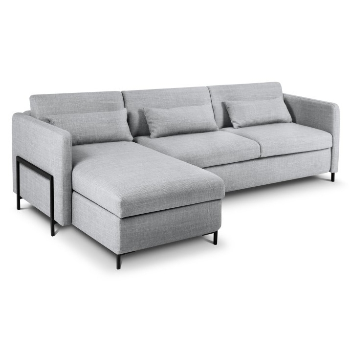 The stable construction based on a frame made of pine wood, particleboard and plywood ensures durability, while the high black metal legs 10 cm high add lightness and emphasise the modern style. The Yanis living room corner sofa is an ideal solution that combines comfort, durability and exceptional aesthetics.