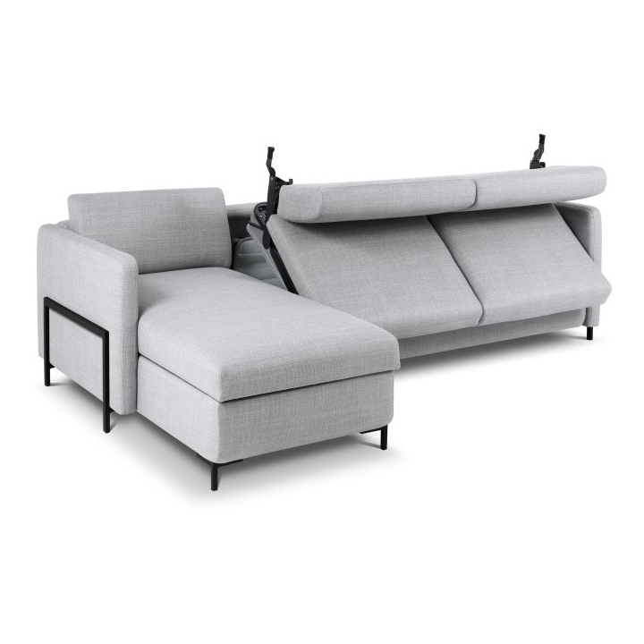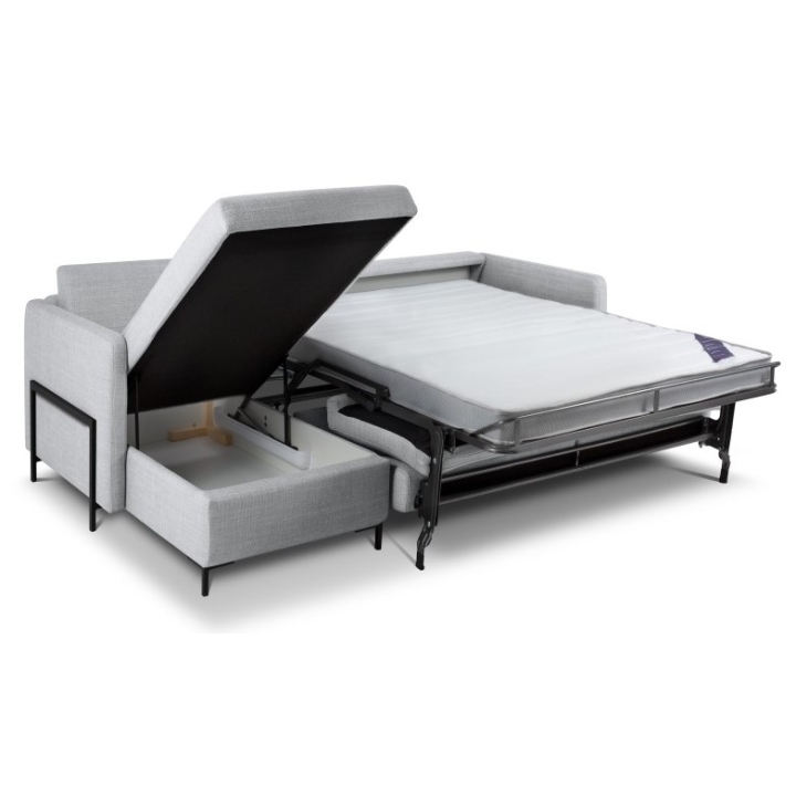 The 4-seater corner sofa with sleeping function Structural fabric Yanis Christian Lacroix is a modern corner sofa, ideal for living rooms decorated in a minimalist style. Its versatile design, available in left- or right-sided versions, and a wide choice of structural fabric colours allow you to fully adapt it to your interior. The sofa is equipped with an Italian frame with a mattress , providing a large sleeping surface measuring 205x140 cm, and a bedding container in the chaise longue.