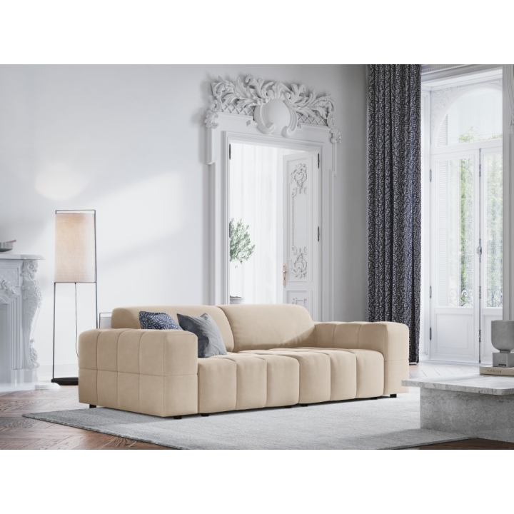The availability of a wide range of upholstery colours, including natural, light shades as well as distinctive, dark shades, makes it possible to match the sofa to a variety of design styles. The velour upholstery changes its shade depending on the angle of the light, giving it depth and a dynamic look.