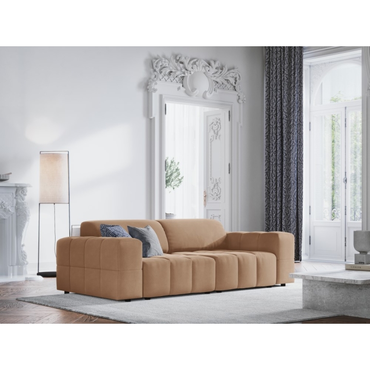 The availability of a wide range of upholstery colours, including natural, light shades as well as distinctive, dark shades, makes it possible to match the sofa to a variety of design styles. The velour upholstery changes its shade depending on the angle of the light, giving it depth and a dynamic look.