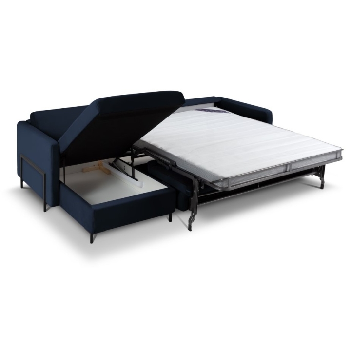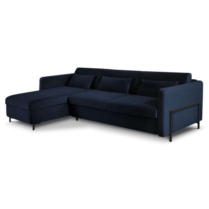 The Yanis Christian Lacroix 5-seater corner sofa with sleeping function in velour is a proposal for lovers of beauty and luxury. The corner sofa's modern design will blend perfectly into your living room, offering both comfort and aesthetics. The design, available in left- or right-handed versions, allows it to fit into any interior, and the wide choice of velour fabric colours offers many personalisation possibilities. A sleeping function with a 205x160 cm surface and a bedding container in the chaise longue (134x77x20) make the corner sofa a practical solution.