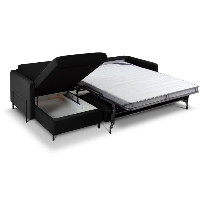 The Yanis Christian Lacroix 5-seater corner sofa with sleeping function in velour is a proposal for lovers of beauty and luxury. The corner sofa's modern design will blend perfectly into your living room, offering both comfort and aesthetics. The design, available in left- or right-handed versions, allows it to fit into any interior, and the wide choice of velour fabric colours offers many personalisation possibilities. A sleeping function with a 205x160 cm surface and a bedding container in the chaise longue (134x77x20) make the corner sofa a practical solution.