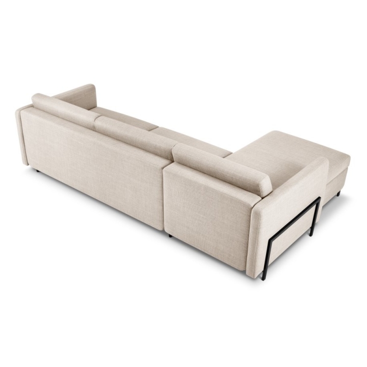 The stable construction of the corner sofa is based on a solid frame made of pine wood, chipboard and plywood. Black metal legs 10 cm high emphasise the modern design, while three backrest cushions and three bolsters filled with Foam Crisp and silicone add to the comfort. The Yanis 5-seater corner sofa is the perfect choice for those looking for a stylish solution for their living room.
