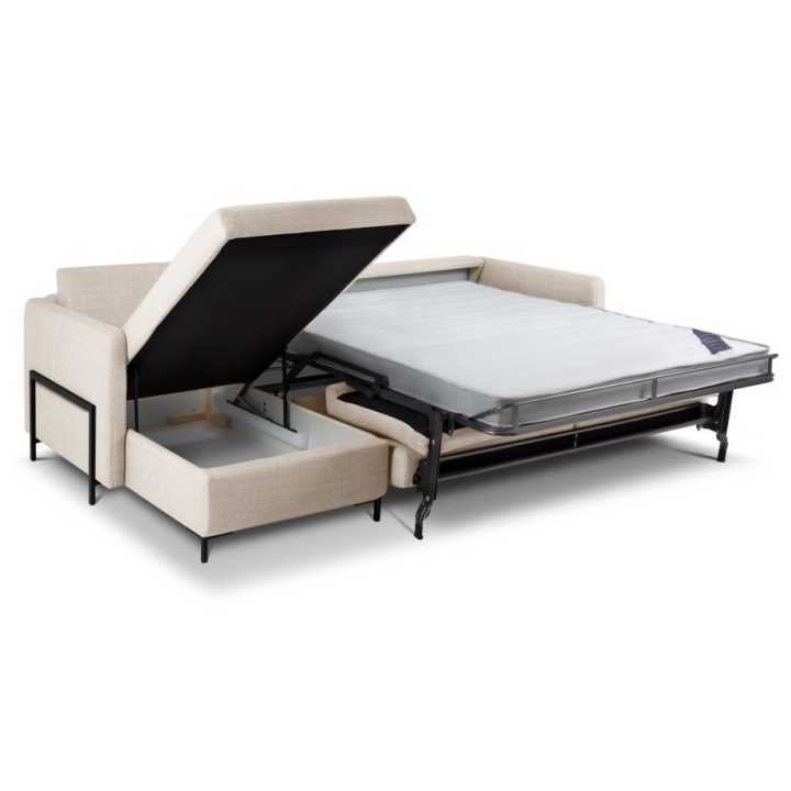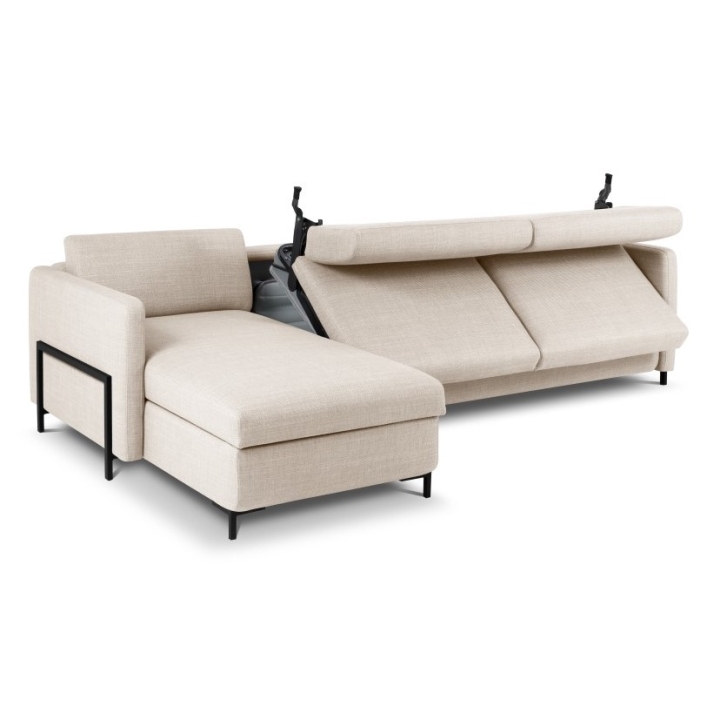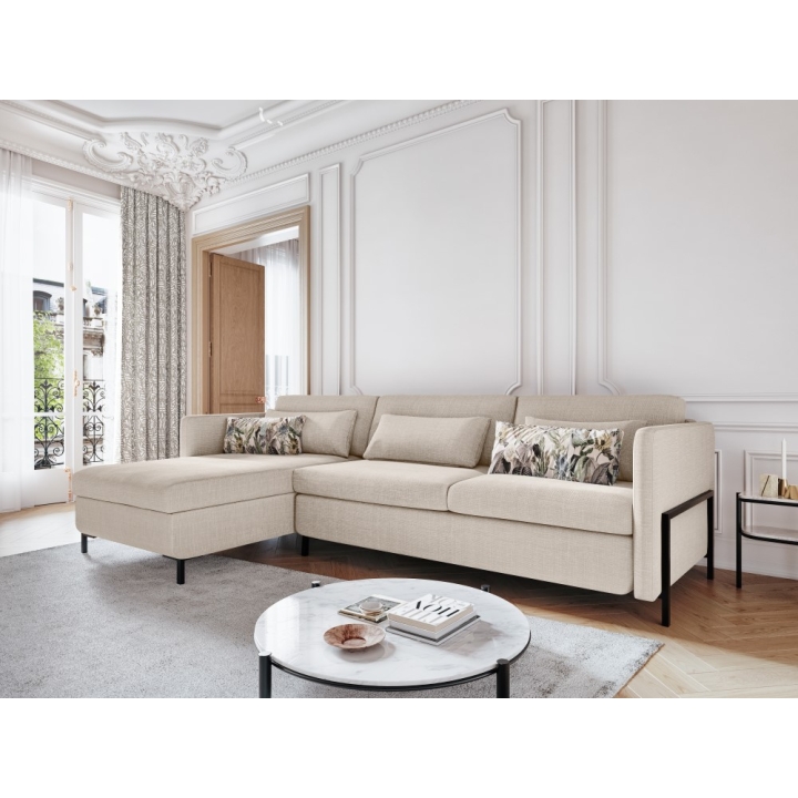 The 5-seater corner sofa with sleeping function Structural fabric Yanis Christian Lacroix is a modern piece of furniture that combines comfort with aesthetics, ideal for minimalist and industrial style living rooms. Available in left- or right-handed versions, the corner sofa's design provides full freedom of arrangement, while the wide choice of structural fabric colours allows for a perfect match with the interior. The Italian frame type sleeping function offers a large sleeping area of 205x160 cm, and the bedding container in the recliner measuring 134x77x20 allows for convenient storage.