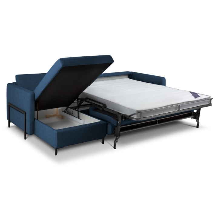 The 5-seater corner sofa with sleeping function Structural fabric Yanis Christian Lacroix is a modern piece of furniture that combines comfort with aesthetics, ideal for minimalist and industrial style living rooms. Available in left- or right-handed versions, the corner sofa's design provides full freedom of arrangement, while the wide choice of structural fabric colours allows for a perfect match with the interior. The Italian frame type sleeping function offers a large sleeping area of 205x160 cm, and the bedding container in the recliner measuring 134x77x20 allows for convenient storage.