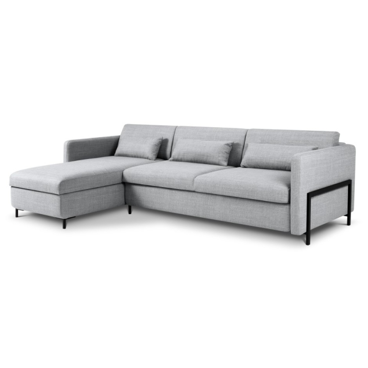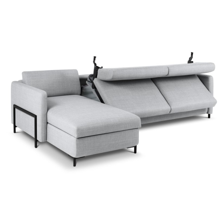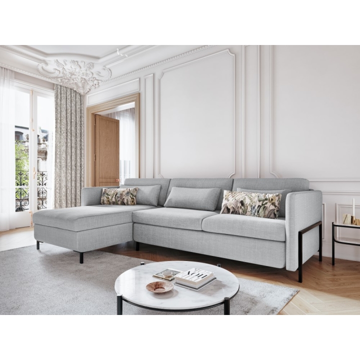 The 5-seater corner sofa with sleeping function Structural fabric Yanis Christian Lacroix is a modern piece of furniture that combines comfort with aesthetics, ideal for minimalist and industrial style living rooms. Available in left- or right-handed versions, the corner sofa's design provides full freedom of arrangement, while the wide choice of structural fabric colours allows for a perfect match with the interior. The Italian frame type sleeping function offers a large sleeping area of 205x160 cm, and the bedding container in the recliner measuring 134x77x20 allows for convenient storage.
