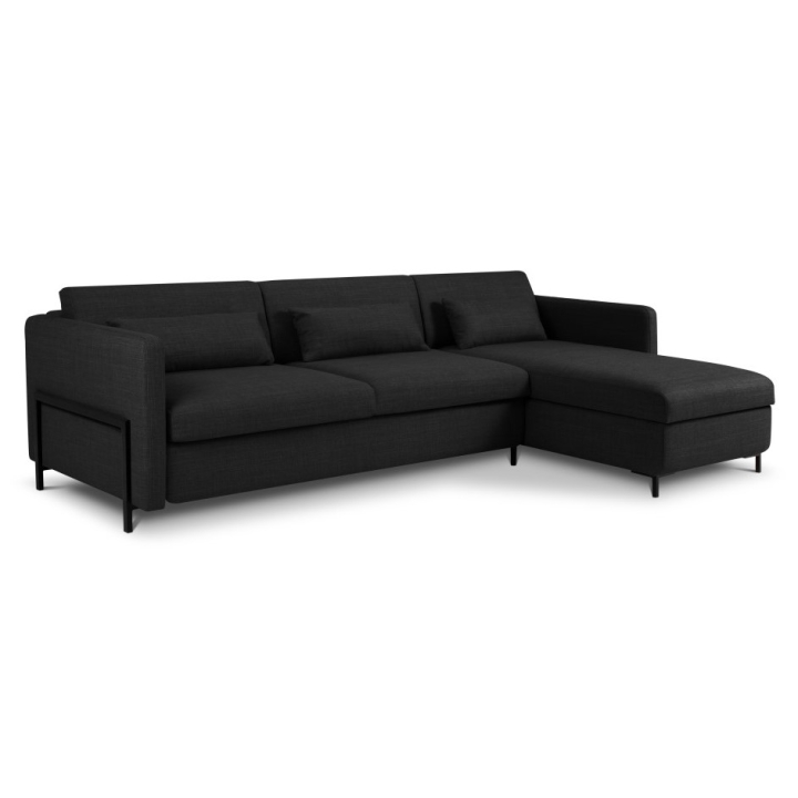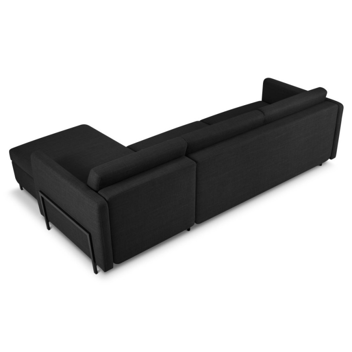 The stable construction of the corner sofa is based on a solid frame made of pine wood, chipboard and plywood. Black metal legs 10 cm high emphasise the modern design, while three backrest cushions and three bolsters filled with Foam Crisp and silicone add to the comfort. The Yanis 5-seater corner sofa is the perfect choice for those looking for a stylish solution for their living room.