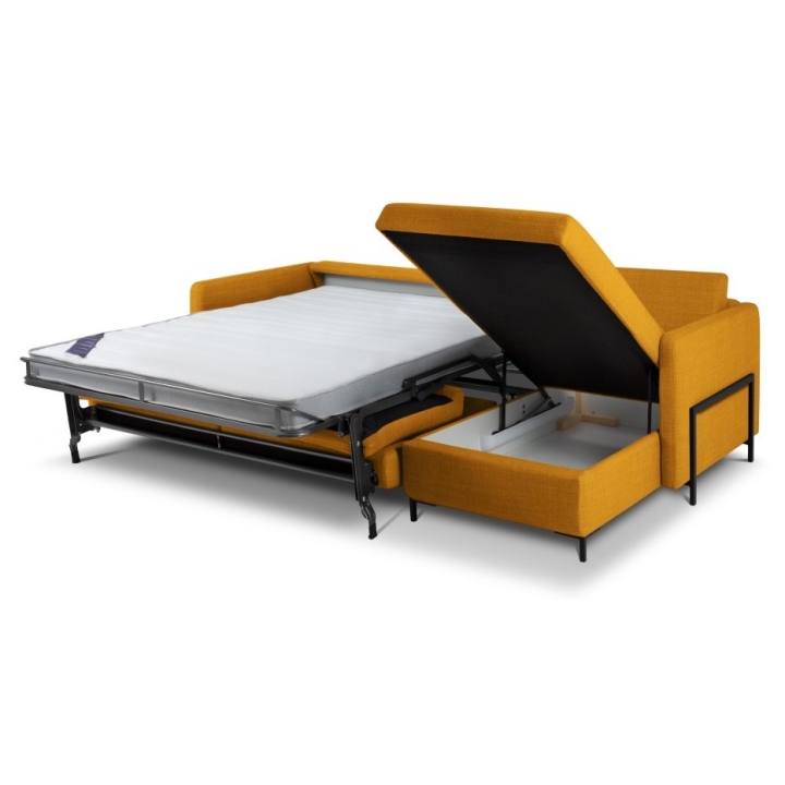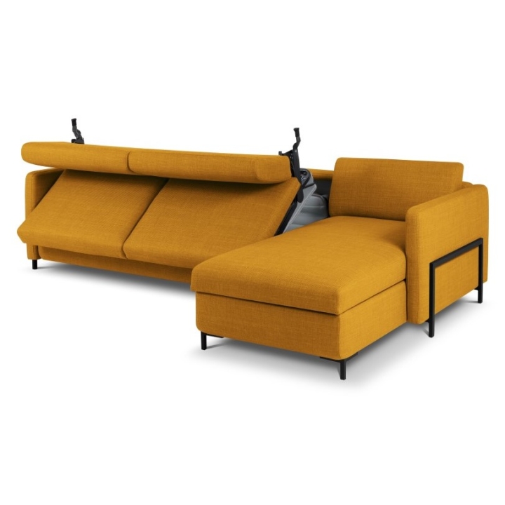 The 5-seater corner sofa with sleeping function Structural fabric Yanis Christian Lacroix is a modern piece of furniture that combines comfort with aesthetics, ideal for minimalist and industrial style living rooms. Available in left- or right-handed versions, the corner sofa's design provides full freedom of arrangement, while the wide choice of structural fabric colours allows for a perfect match with the interior. The Italian frame type sleeping function offers a large sleeping area of 205x160 cm, and the bedding container in the recliner measuring 134x77x20 allows for convenient storage.