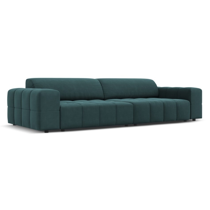 The Luc Christian Lacroix 4-seater sofa is an exceptional choice for modern and elegant interiors. Made of velvet velour fabric, which is characterised by a delicate sheen and exceptional softness to the touch, the sofa is the perfect combination of aesthetics and comfort. The generous seat filled with 30 kg/m³ polyurethane foam and the 25 kg/m³ polyurethane foam backrest ensure comfort during everyday use. The high-quality velour fabric is abrasion-resistant (Martindale test: 100,000), guaranteeing durability and a beautiful appearance for years to come.