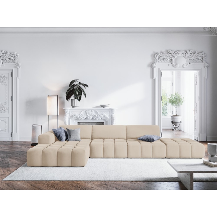 The Luc 5-seater corner sofa from Christian Lacroix is a unique piece of furniture that stands out for its modern design and comfort of use. The option to choose the side of the corner sofa (left or right) and a wide range of upholstery colours allows you to customise it to your individual needs. Made of velvet fabric, which is characterised by a subtle sheen, its unique texture adds a touch of glamour to the interior while guaranteeing unparalleled durability.