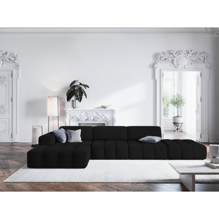 The Luc 5-seater corner sofa from Christian Lacroix is a unique piece of furniture that stands out for its modern design and comfort of use. The option to choose the side of the corner sofa (left or right) and a wide range of upholstery colours allows you to customise it to your individual needs. Made of velvet fabric, which is characterised by a subtle sheen, its unique texture adds a touch of glamour to the interior while guaranteeing unparalleled durability.