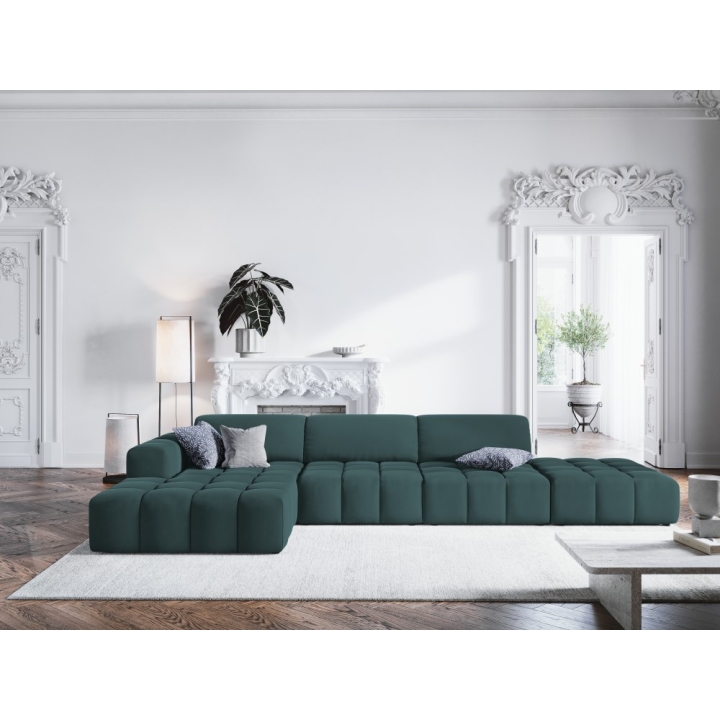 The Luc 5-seater corner sofa from Christian Lacroix is a unique piece of furniture that stands out for its modern design and comfort of use. The option to choose the side of the corner sofa (left or right) and a wide range of upholstery colours allows you to customise it to your individual needs. Made of velvet fabric, which is characterised by a subtle sheen, its unique texture adds a touch of glamour to the interior while guaranteeing unparalleled durability.
