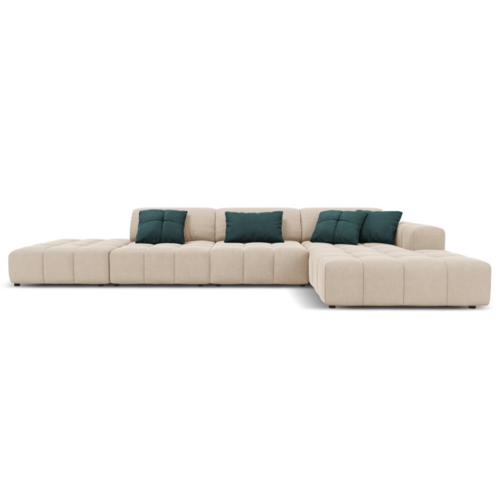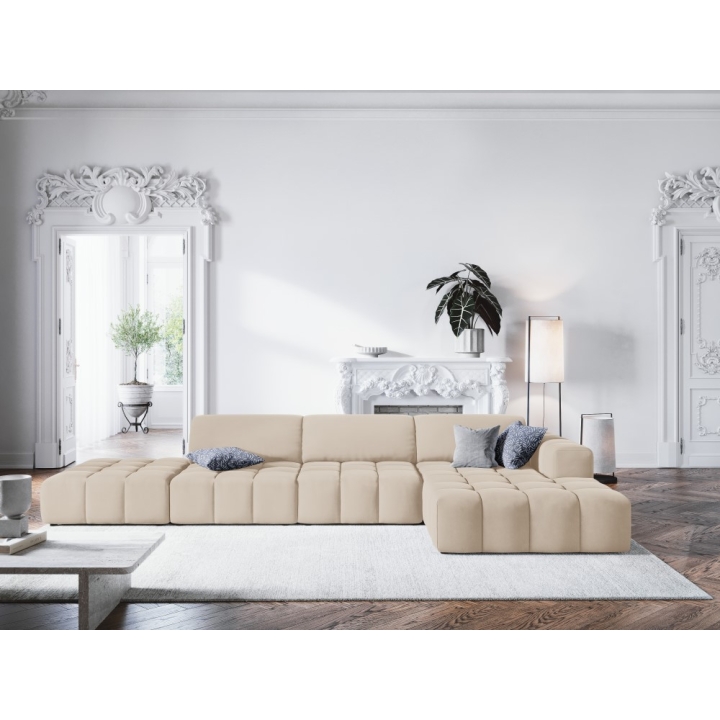 The Luc 5-seater corner sofa from Christian Lacroix is a unique piece of furniture that stands out for its modern design and comfort of use. The option to choose the side of the corner sofa (left or right) and a wide range of upholstery colours allows you to customise it to your individual needs. Made of velvet fabric, which is characterised by a subtle sheen, its unique texture adds a touch of glamour to the interior while guaranteeing unparalleled durability.