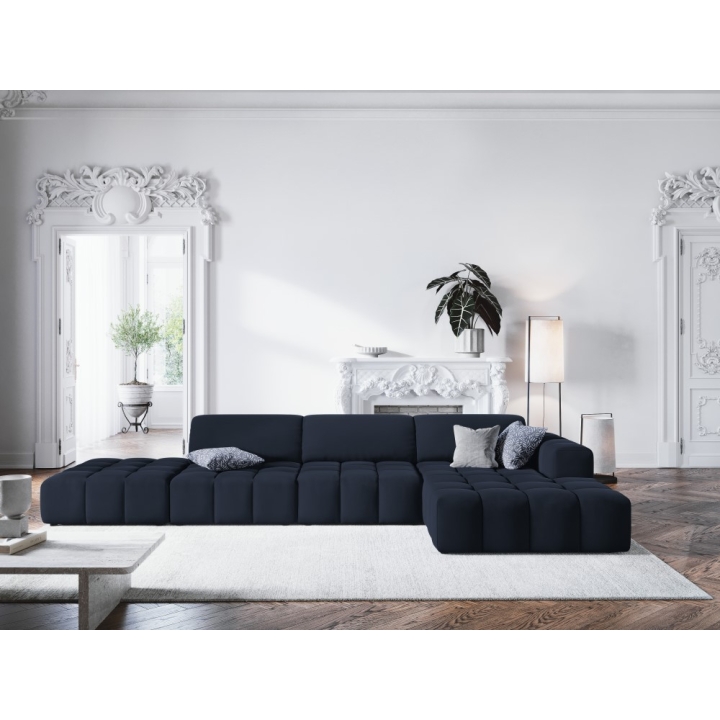 The Luc 5-seater corner sofa from Christian Lacroix is a unique piece of furniture that stands out for its modern design and comfort of use. The option to choose the side of the corner sofa (left or right) and a wide range of upholstery colours allows you to customise it to your individual needs. Made of velvet fabric, which is characterised by a subtle sheen, its unique texture adds a touch of glamour to the interior while guaranteeing unparalleled durability.