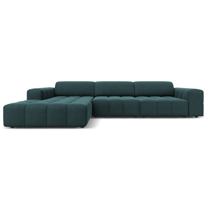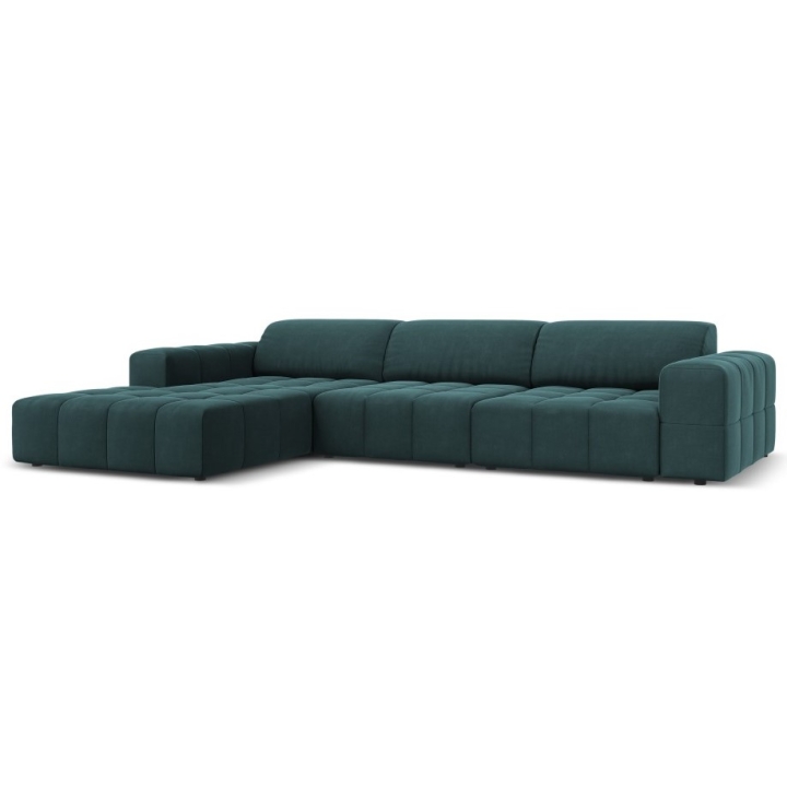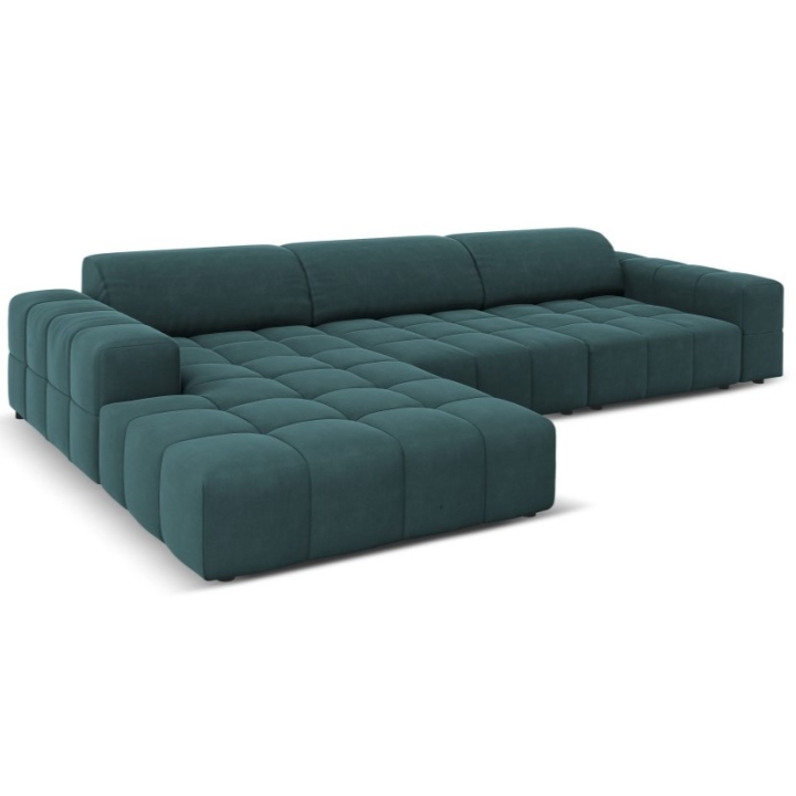 The dimensions of the sofa are 284 cm wide, 166 cm deep and 70 cm high. The chaise longue, which is included in the furniture, is 102 cm wide and the seat depth is 62 cm which provides a comfortable space for relaxation. The black legs of the sofa are just 1 cm high, which gives the entire structure a light and modern feel, while allowing for easy cleaning underneath.