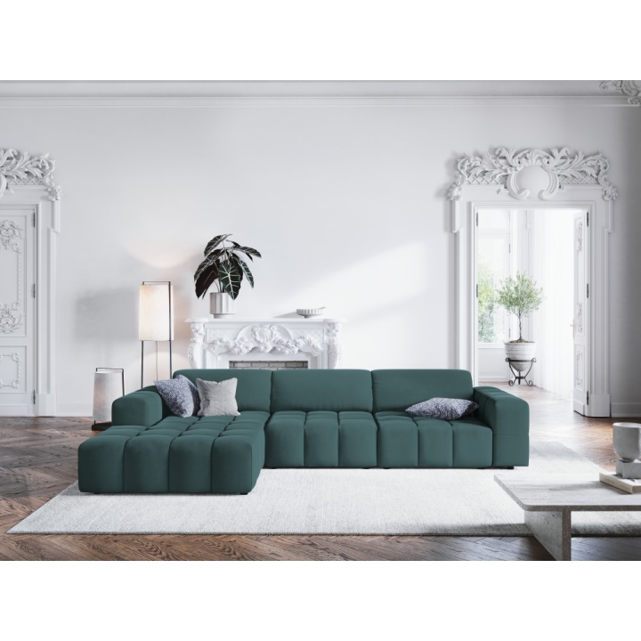 The Luc 4-seater corner sofa from Christian Lacroix is a unique piece of furniture designed to provide comfort for four people, creating a spacious and comfortable relaxation area. Its thoughtful design guarantees just the right amount of space, allowing it to be used comfortably by the whole family or a group of guests. Made from a unique velvet fabric and available in a variety of upholstery colours, it allows you to tailor it to your individual preferences. There is a choice of right- or left-sided versions, making it ideal for blending into different spatial layouts.