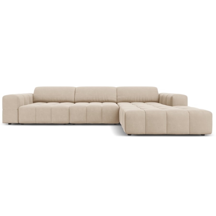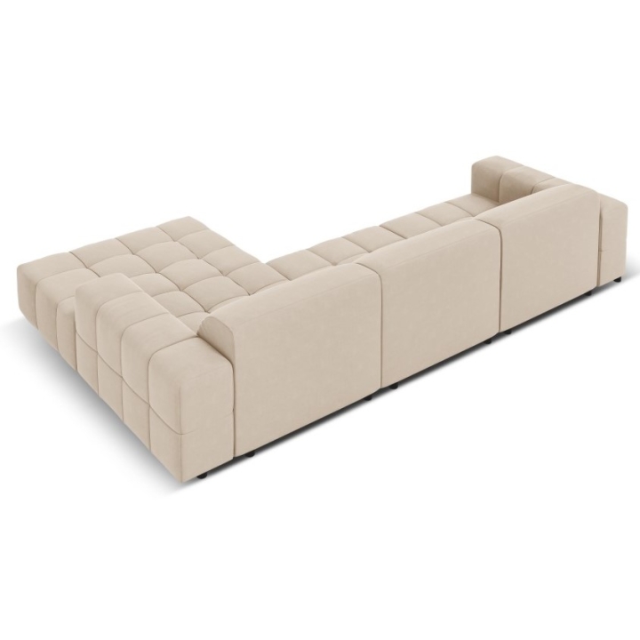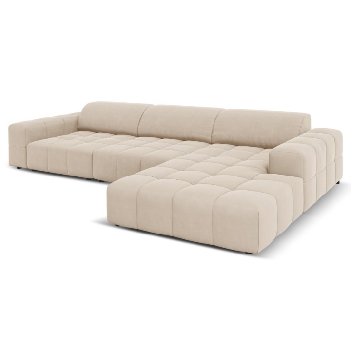 The dimensions of the sofa are 284 cm wide, 166 cm deep and 70 cm high. The chaise longue, which is included in the furniture, is 102 cm wide and the seat depth is 62 cm which provides a comfortable space for relaxation. The black legs of the sofa are just 1 cm high, which gives the entire structure a light and modern feel, while allowing for easy cleaning underneath.