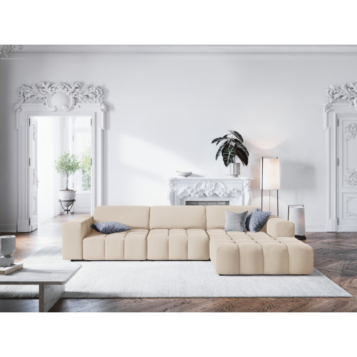 The Luc 4-seater corner sofa from Christian Lacroix is a unique piece of furniture designed to provide comfort for four people, creating a spacious and comfortable relaxation area. Its thoughtful design guarantees just the right amount of space, allowing it to be used comfortably by the whole family or a group of guests. Made from a unique velvet fabric and available in a variety of upholstery colours, it allows you to tailor it to your individual preferences. There is a choice of right- or left-sided versions, making it ideal for blending into different spatial layouts.