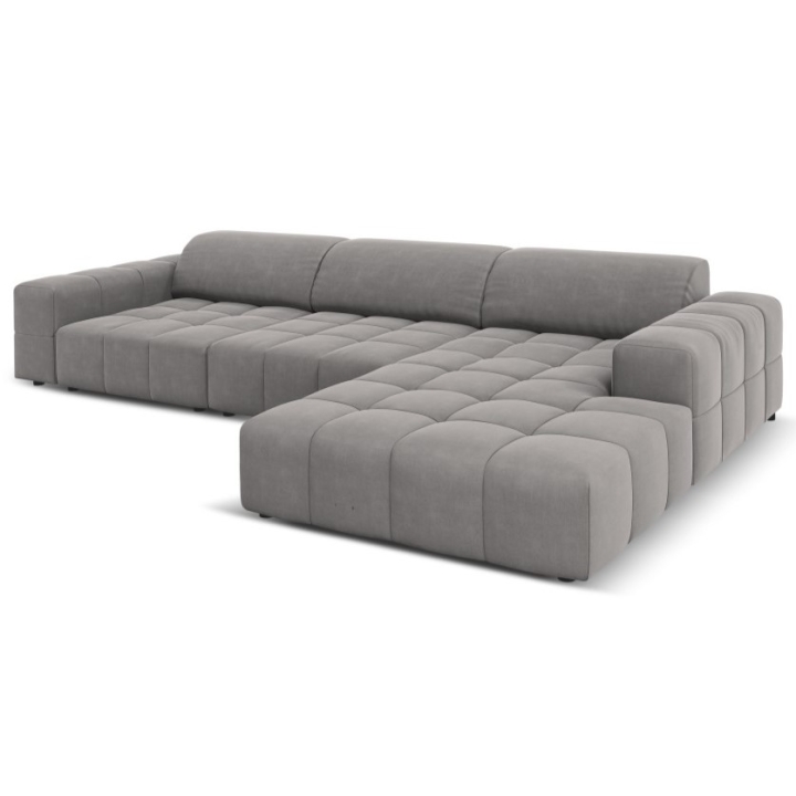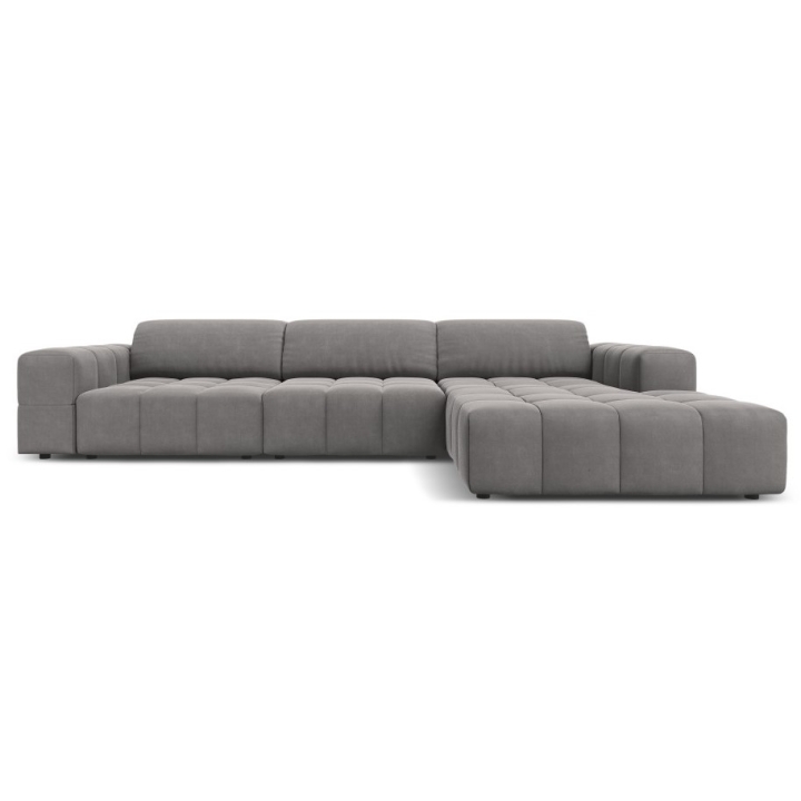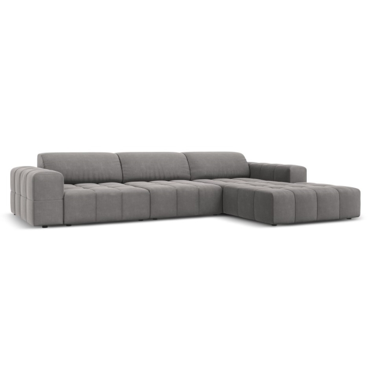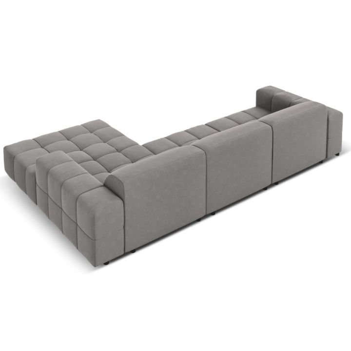 The dimensions of the sofa are 284 cm wide, 166 cm deep and 70 cm high. The chaise longue, which is included in the furniture, is 102 cm wide and the seat depth is 62 cm which provides a comfortable space for relaxation. The black legs of the sofa are just 1 cm high, which gives the entire structure a light and modern feel, while allowing for easy cleaning underneath.