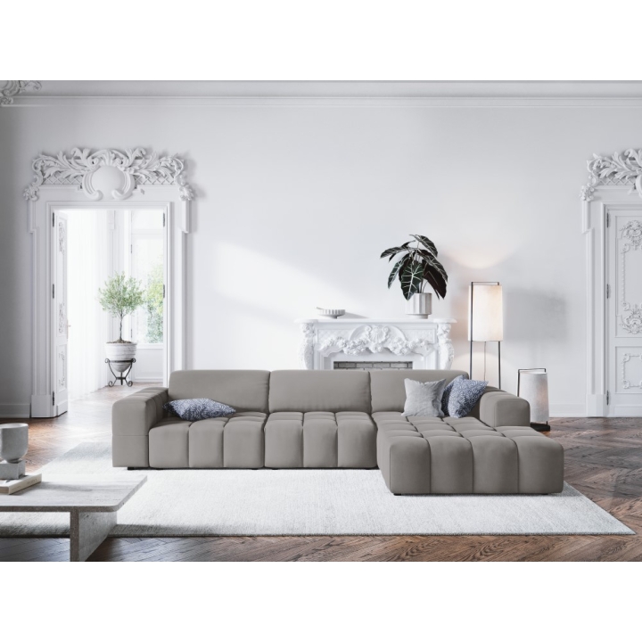 The Luc 4-seater corner sofa from Christian Lacroix is a unique piece of furniture designed to provide comfort for four people, creating a spacious and comfortable relaxation area. Its thoughtful design guarantees just the right amount of space, allowing it to be used comfortably by the whole family or a group of guests. Made from a unique velvet fabric and available in a variety of upholstery colours, it allows you to tailor it to your individual preferences. There is a choice of right- or left-sided versions, making it ideal for blending into different spatial layouts.