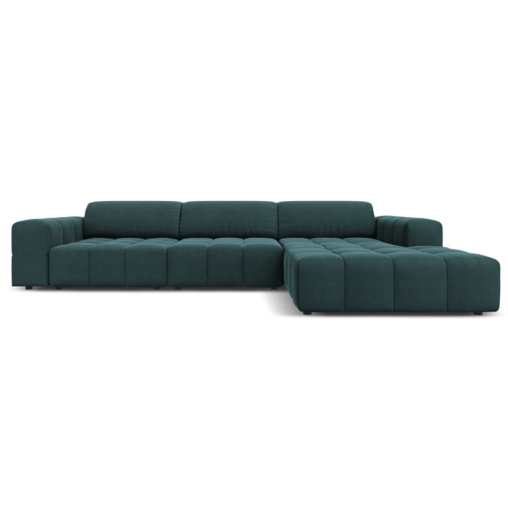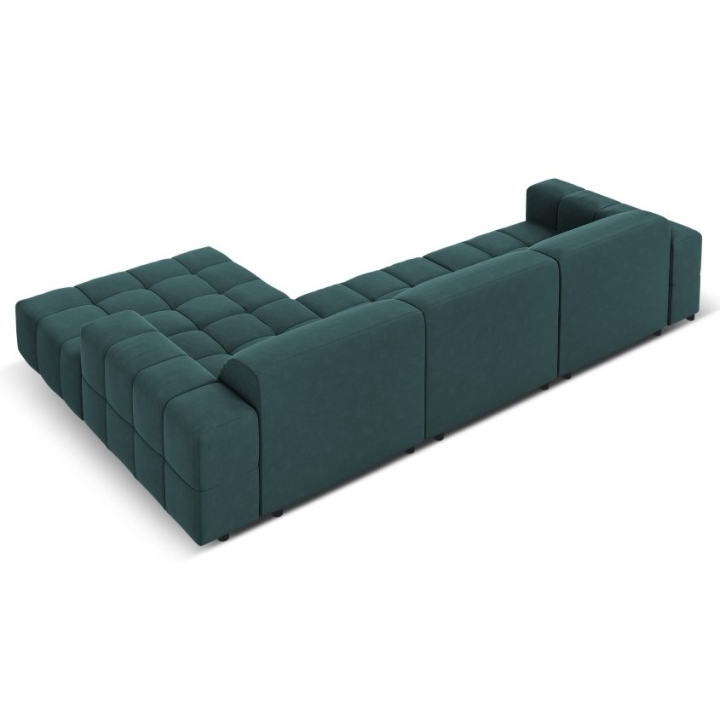 The dimensions of the sofa are 284 cm wide, 166 cm deep and 70 cm high. The chaise longue, which is included in the furniture, is 102 cm wide and the seat depth is 62 cm which provides a comfortable space for relaxation. The black legs of the sofa are just 1 cm high, which gives the entire structure a light and modern feel, while allowing for easy cleaning underneath.