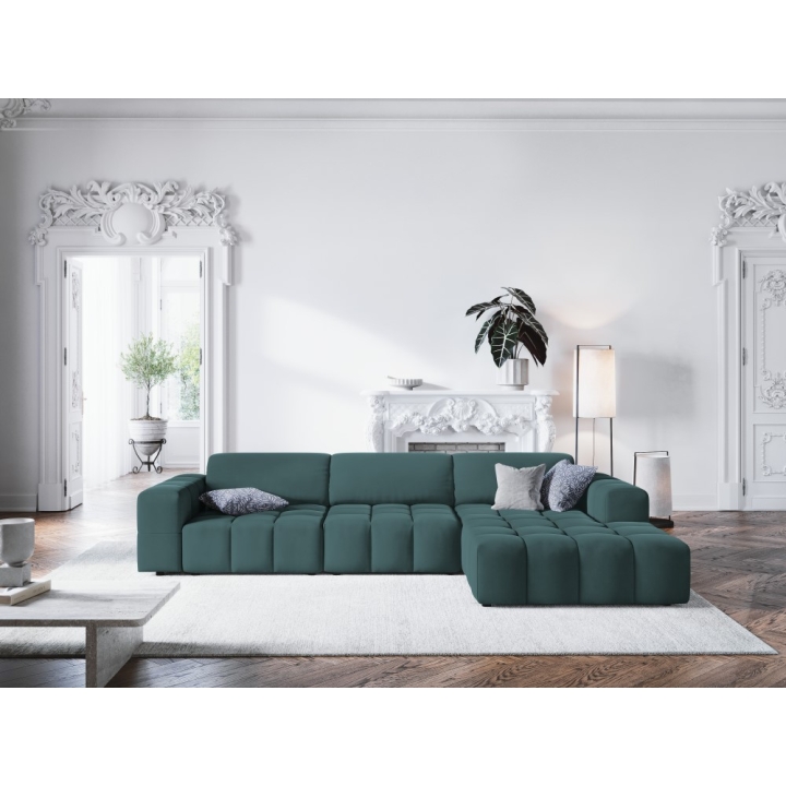The Luc 4-seater corner sofa from Christian Lacroix is a unique piece of furniture designed to provide comfort for four people, creating a spacious and comfortable relaxation area. Its thoughtful design guarantees just the right amount of space, allowing it to be used comfortably by the whole family or a group of guests. Made from a unique velvet fabric and available in a variety of upholstery colours, it allows you to tailor it to your individual preferences. There is a choice of right- or left-sided versions, making it ideal for blending into different spatial layouts.