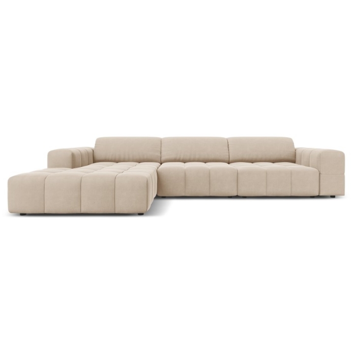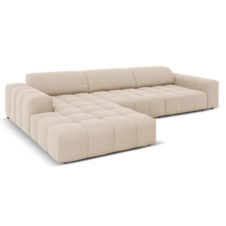 The dimensions of the sofa are 284 cm wide, 166 cm deep and 70 cm high. The chaise longue, which is included in the furniture, is 102 cm wide and the seat depth is 62 cm which provides a comfortable space for relaxation. The black legs of the sofa are just 1 cm high, which gives the entire structure a light and modern feel, while allowing for easy cleaning underneath.