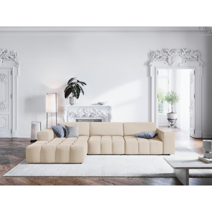 The Luc 4-seater corner sofa from Christian Lacroix is a unique piece of furniture designed to provide comfort for four people, creating a spacious and comfortable relaxation area. Its thoughtful design guarantees just the right amount of space, allowing it to be used comfortably by the whole family or a group of guests. Made from a unique velvet fabric and available in a variety of upholstery colours, it allows you to tailor it to your individual preferences. There is a choice of right- or left-sided versions, making it ideal for blending into different spatial layouts.