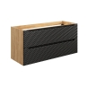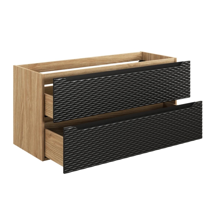 The Ocean Black 82-120-2S washbasin cabinet from Comad is a piece of furniture that combines the rawness of black with the natural beauty of light oak to create a unique harmony. Durability and natural texture emanate from the MDF body in oiled oak, while the black MDF fronts add depth and sophistication. This piece of furniture will fit perfectly in modern interiors, emphasising their character thanks to the contrast of the black colour with the light wood.