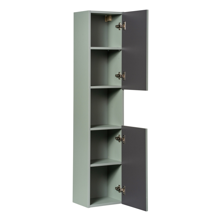 The Reed Green D 80-03-2D Tall Cabinet is the perfect choice to meet your expectations. This elegant bathroom cabinet, also known as a bathroom pedestal, has been designed with aesthetics and comfort in mind. Its unique Reed Green colour, reminiscent of a mint shade, brings a fresh and modern look to the interior. The 30 cm wide bathroom wall cabinet is perfect for small and large bathrooms, making the most of the available space. With its minimalist design and subtle colour scheme, the mint bathroom cabinet fits harmoniously into various design styles, from classic to modern. By choosing the Reed Green D 80-03-2D bathroom cabinet, you are investing in quality and durability.