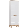 The 4D 60 cm Bali White tall cabinet is a unique bathroom piece of furniture that fits perfectly into space arrangements where the combination of aesthetics and comfort is important. With dimensions of 187 cm in height, 60 cm in width and 33 cm in depth, this white bathroom cabinet provides ample space to store all your essential bathroom accessories. Fitted with four doors, it offers five capacious shelves made of durable laminated board, which guarantees a long life for the furniture. The white of the fronts, made from high-quality MDF, blends perfectly with the subtle oak wotan inserts and legs, bringing warmth and a natural touch to the bathroom interior. The silent closure ensures comfortable use of the cabinet, eliminating noise when closing the door.
