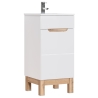 The front of the cabinet, made of MDF in white, is complemented by subtle inserts and legs in the shade of oak wotan, which gives the whole a warm and natural character. The body made of laminated board is resistant to moisture and damage, which makes the cabinet perfect for bathroom use. The recommended washbasin model that perfectly matches this cabinet is UM-CFP 9048B/8023 - 40. The precise matching of both elements ensures an aesthetically pleasing look and the convenience of everyday use.