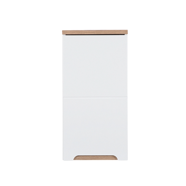 The front of the cabinet made of durable MDF in white is resistant to damage and easy to keep clean. Additional inserts give the furniture a unique character, which, combined with the moisture-resistant laminated body, creates a piece of furniture that meets the demands of the bathroom environment.