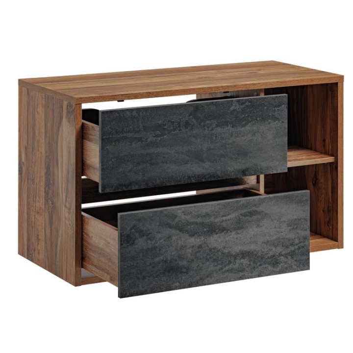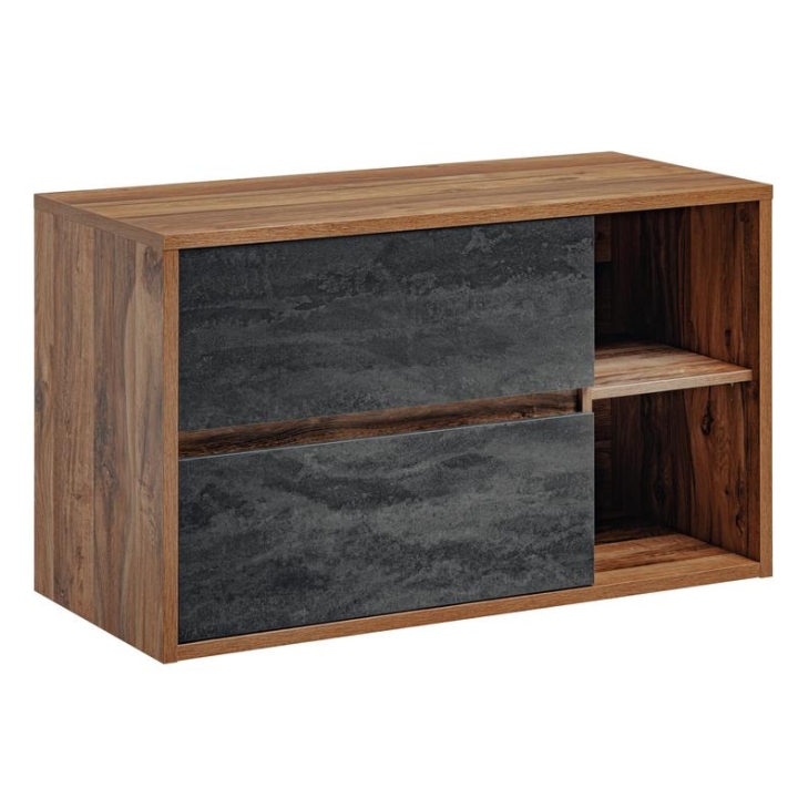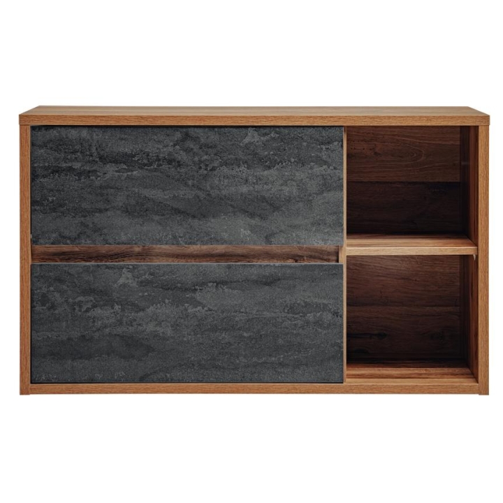 The Hampton washbasin bathroom cabinet is an excellent choice for those who appreciate modern solutions and elegant style. The combination of dark concrete with the warm shade of Hunton oak makes this piece of furniture the focal point of any bathroom, adding character and class to it.