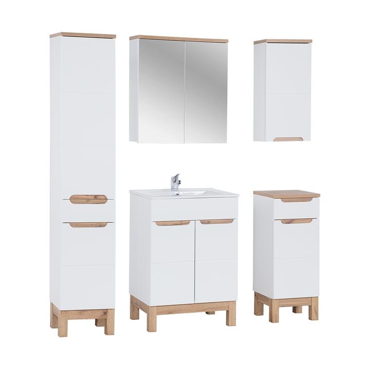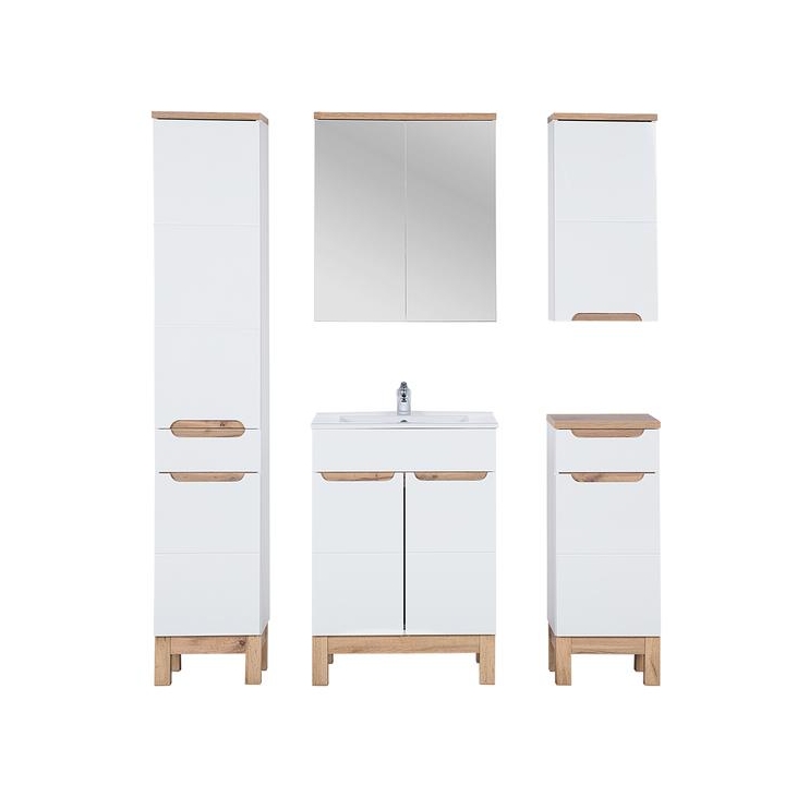 The Bali White bathroom furniture set is an ideal solution for those who appreciate modern and elegant interior design. Furniture from this collection is distinguished by a subtle combination of white with natural inserts in the shade of oak Wotan, which gives the bathroom a warm and cosy character. The set has been designed with maximum functionality in mind, while ensuring an aesthetically pleasing appearance and robustness for years to come.