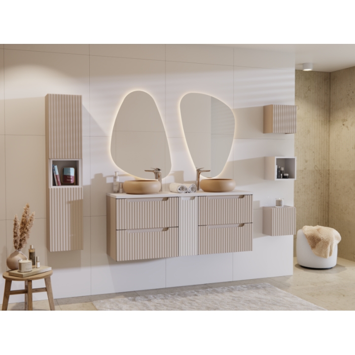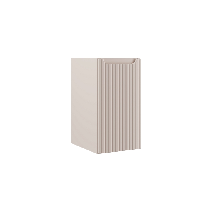The Nova Cashmere 1D 30 cm under-counter cabinet is a minimalist piece of furniture from the NOVA collection, ideal for modern interiors. Made from durable laminated board and MDF, the whole piece is kept in an elegant cashmere colour, both on the fronts and the body. The matt finish gives the cabinet a subtle, timeless feel. With a sleek form measuring 30 cm wide, 57 cm high and 39 cm deep, the cabinet fits perfectly into smaller spaces while offering a usable storage solution thanks to a single shelf and a single door. The fluted fronts, characteristic of the collection, add a unique style to the furniture, which fits harmoniously into a variety of interior arrangements.