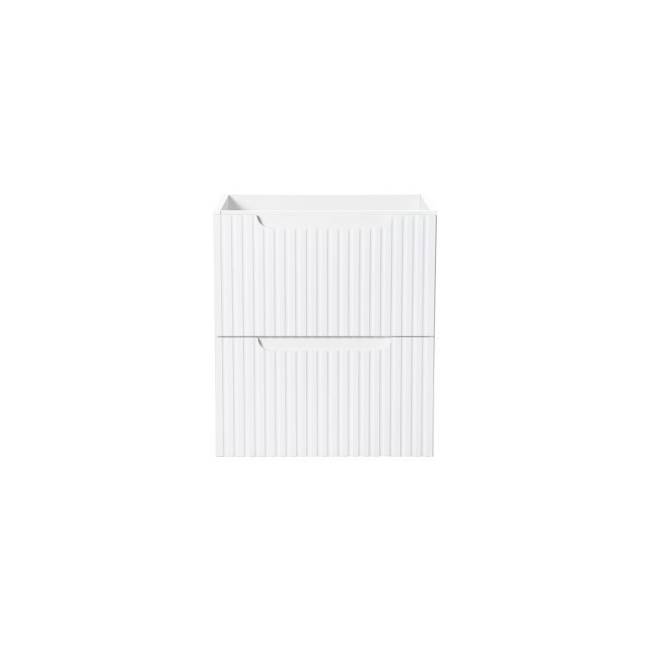 Delicate fluting on the fronts introduces an interesting decorative element that emphasises the character of the furniture. The cabinet in white fits perfectly into modern and minimalist interiors where harmony and simplicity of form are important. The compact dimensions: 50 cm wide, 39 cm deep and 57 cm high make this piece of furniture ideal for under-counter use in a bathroom where space is at a premium.