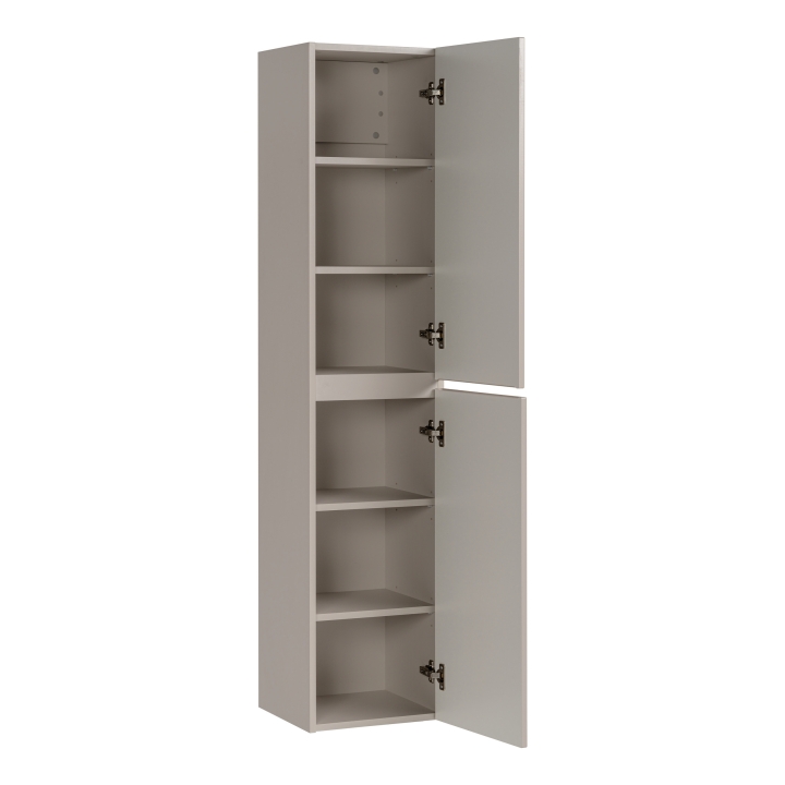 The 80-01-d-2D bathroom pedestal from the Iconic Cashmere collection from Comad is a modern piece of furniture measuring 160 cm high, 35 cm wide and 33 cm deep. Maintained in a subtle beige colour, it harmonises with the Cashmere finish on both the fronts and the body. The fronts with integrated handle are made of durable MDF in vertical milled grooves , while the body is made of moisture-resistant laminated board. The entire unit is finished in a matt texture, which emphasises its minimalist design.
