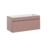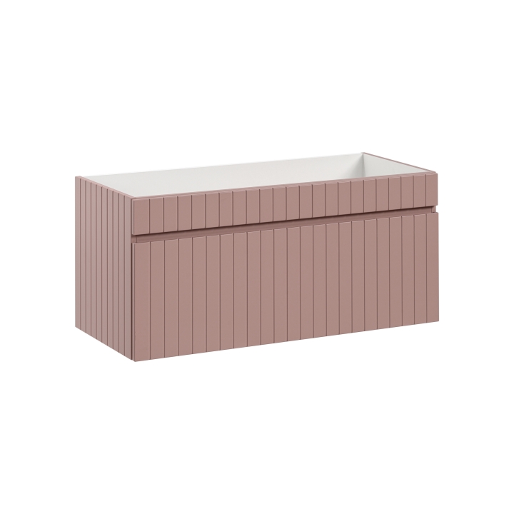The82-100-E-1S Iconic Rose washbasin cabinet is the ideal choice for lovers of modern design from the Iconic collection. Maintained in a muted shade of Antique Rose, the cabinet blends perfectly with interiors that value simplicity and sophisticated style. The fronts with integrated handle made of MDF with a matt finish give the furniture a modern look. This model is equipped with a capacious drawer that conceals a space suitable for storing various bathroom items. Measuring100 cm wide, 46 cm high and 45.6 cm deep, the cabinet will fit harmoniously into various bathroom layouts, emphasising the minimalist character of the arrangement. The drawer fronts are additionally decorated with milled vertical grooves.
