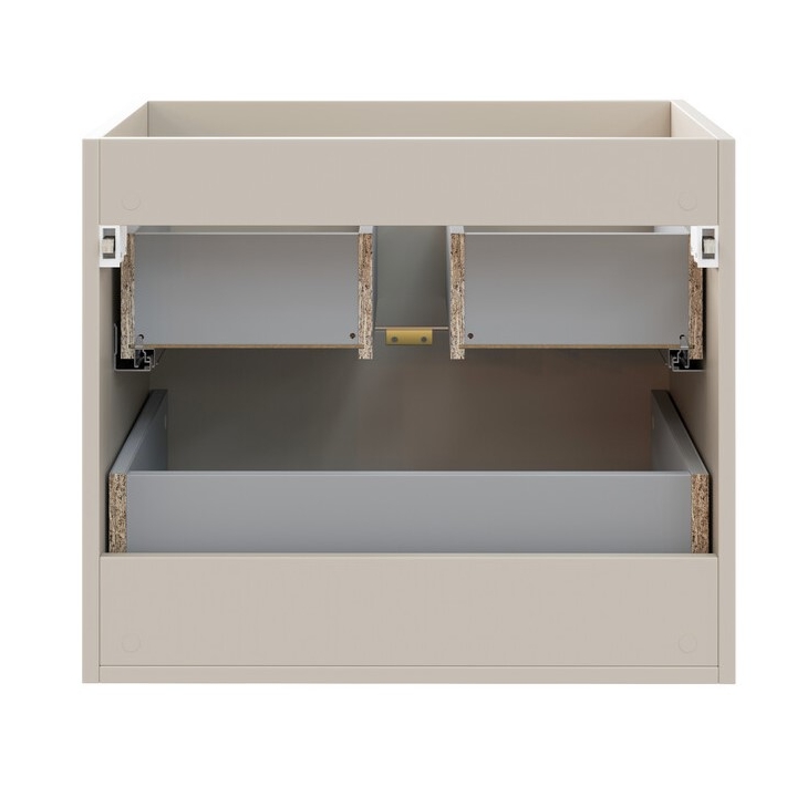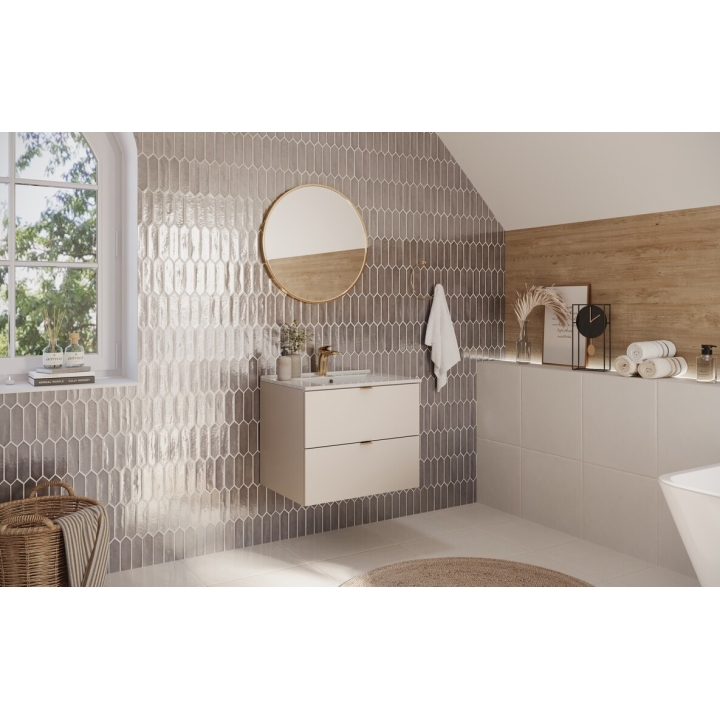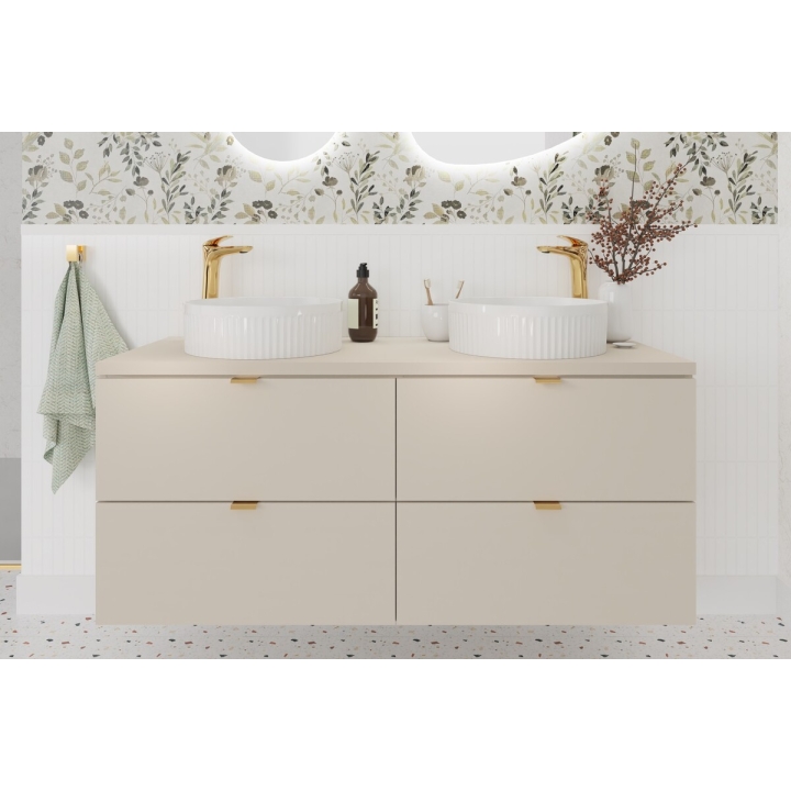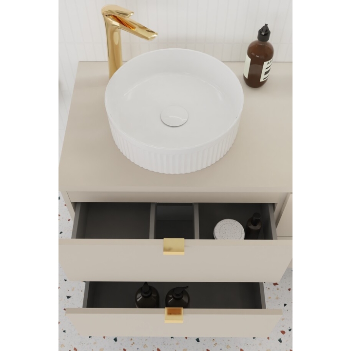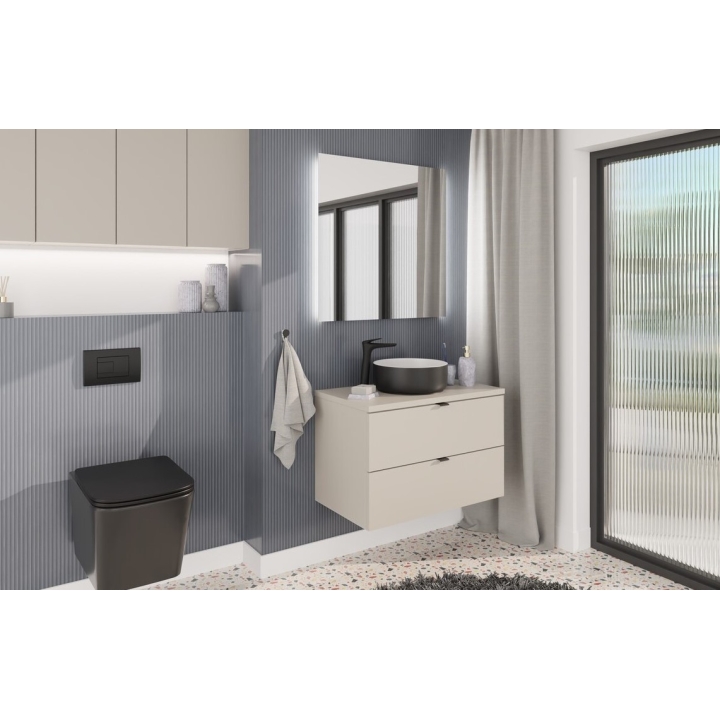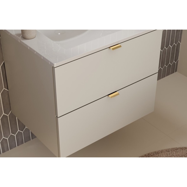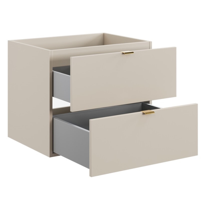 The Dalia Cashmere 82-60-46-2Swashbasin cabinet from the Dalia Cashmere collection by Comad, measuring 60 cm wide, 50 cm high and 46 cm deep, is a proposal in cashmere matt. The minimalist fronts made of laminated board emphasise the simplicity of its form. The cabinet comes with three colours of handles: gloss gold, gloss chrome and matte black, which makes it possible to adapt the furniture to different interiors.