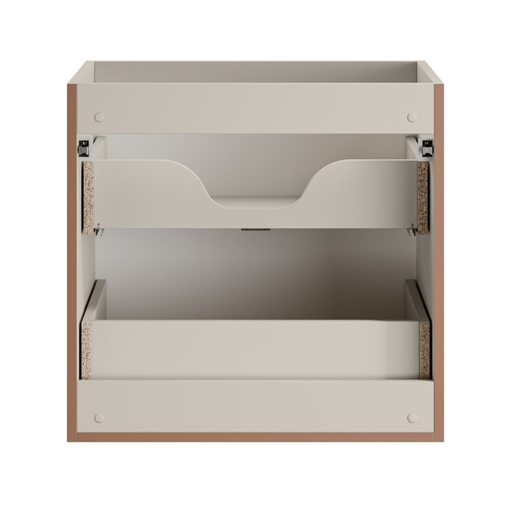 Measuring 60 cm wide, 57 cm high and 46 cm deep, the cabinet is equipped with two capacious drawers that provide ample storage space for bathroom accessories. A quiet closing system for the drawers adds to the comfort of use, while different drawer extension depths allow easy access to stored items. The furniture is compatible with a furniture washbasin, pedestal washbasin and countertop for a wide range of design possibilities.