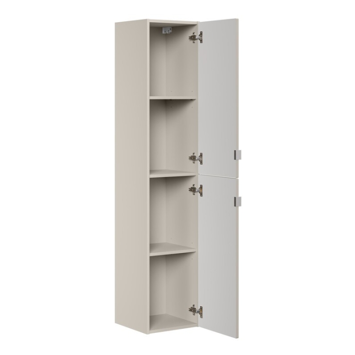 The 80-35-2D Bella Cashmere COMAD high cabinet is a two-door bathroom cabinet ideal for modern and classic interiors. Made of MDF board - the front and laminated board - the body in the shade of cashmere matt, it harmonises with other elements from the Bella Cashmere collection and the Cashmere and Artisan decors. The bevelled fronts add to its stylish look, and the choice of gold, chrome or matte black handles allows it to match the bathroom décor.