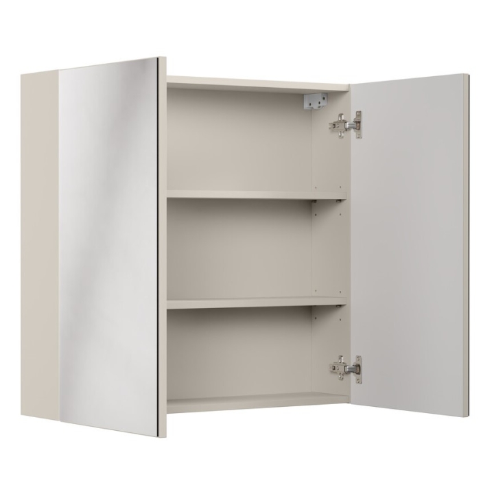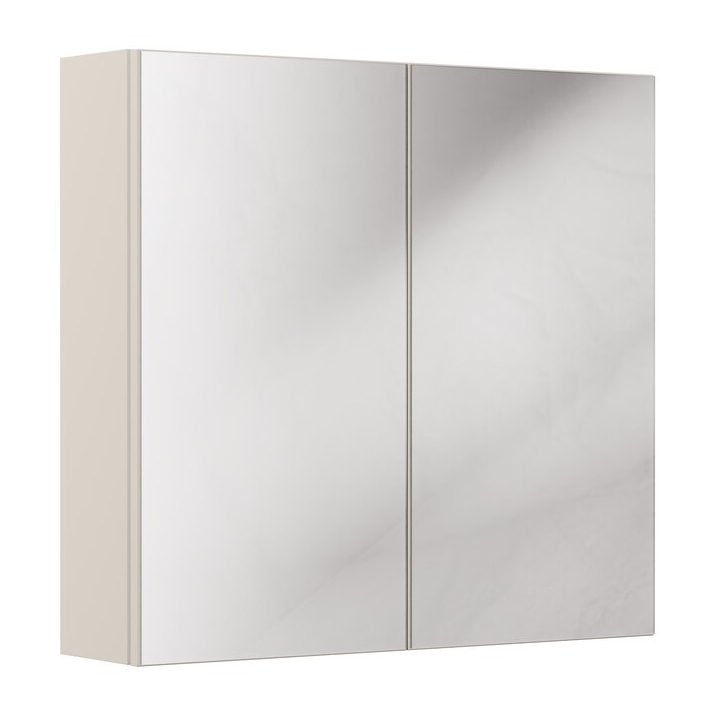 The UN 84-80-2D Bella Cashmere COMAD mirror cabinet is a two-door wall cabinet that is perfect for modern and classic bathrooms. Made from laminated board in cashmere matt, it features mirrored fronts that have been placed on the board for added durability and moisture resistance. The integrated handle provides convenience of use and gives the furniture a consistent modern look, blending perfectly with the Bella Cashmere collection.