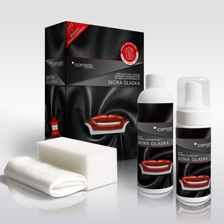 The COMODO upholstered leathercare set is a must for anyone who wants their furniture to stay fresh for as long as possible without the risk of stains and dirt. These products are very easy to use and at the same time allow for efficient maintenance of the furniture, effectively prolonging the life of decoration elements, thus keeping them in perfect shape. The protection and care set for upholstered furniture Smooth Leather is a hit!