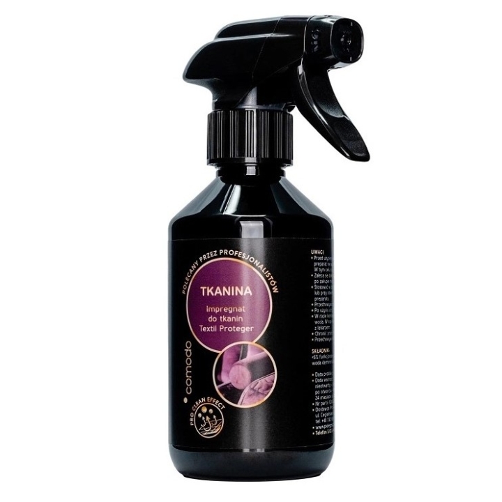 COMODO'sfabric impregnator is a specially formulated product designed to care for fabrics. It effectively protects against dirt and stains while refreshing the colour. The presented fabric impregnator does not allow moisture, grease and human sweat to be absorbed. After application, it forms a non-greasy film on the surface of the fabric. It has a UV filter.