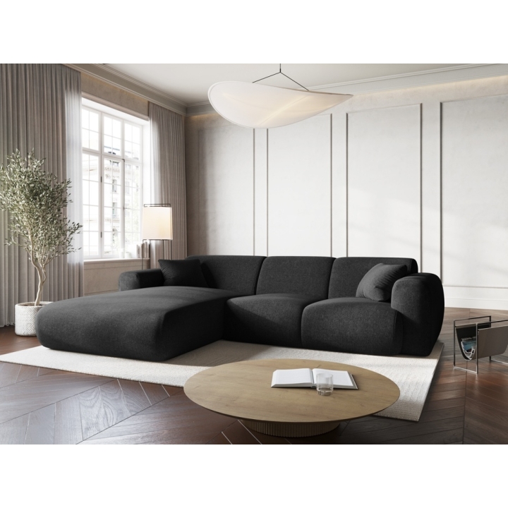 The Nolio 260x170 4-seater corner sofa Cosmopolitan-design is the ideal solution for those who appreciate spaciousness and comfort in their living room. Made from Haga chenille fabric, it features a 3D effect that gives it a unique character. The colour scheme to choose from allows you to customise the corner sofa to your individual preferences, while the black plastic legs add a modern touch.